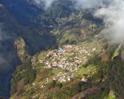 L’itinéraire se poursuit en direction du belvédère de l’Eira do Serrado, situé à 1 095 mètres d’altitude. Ce site impressionnant domine le village de Curral das Freiras, niché au cœur d’un cratère volcanique ancien. Entouré de montagnes abruptes, ce paysage grandiose illustre parfaitement la majesté naturelle de l’île.